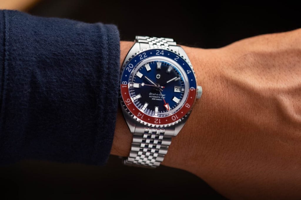 By and large, however, most of the GMTs that have been released by independents and microbrands this year have been “caller” GMTs. That’s primarily because movements with caller GMT complications are plentiful and the Seiko NH34 and the Sellita 330-x movements — the ones most preferred by indies and micros — are readily available and relatively affordable. Meanwhile, movements with “traveller” GMT complications — where the hour hand moves independently in 1-hour increments — are more expensive and not as readily available.